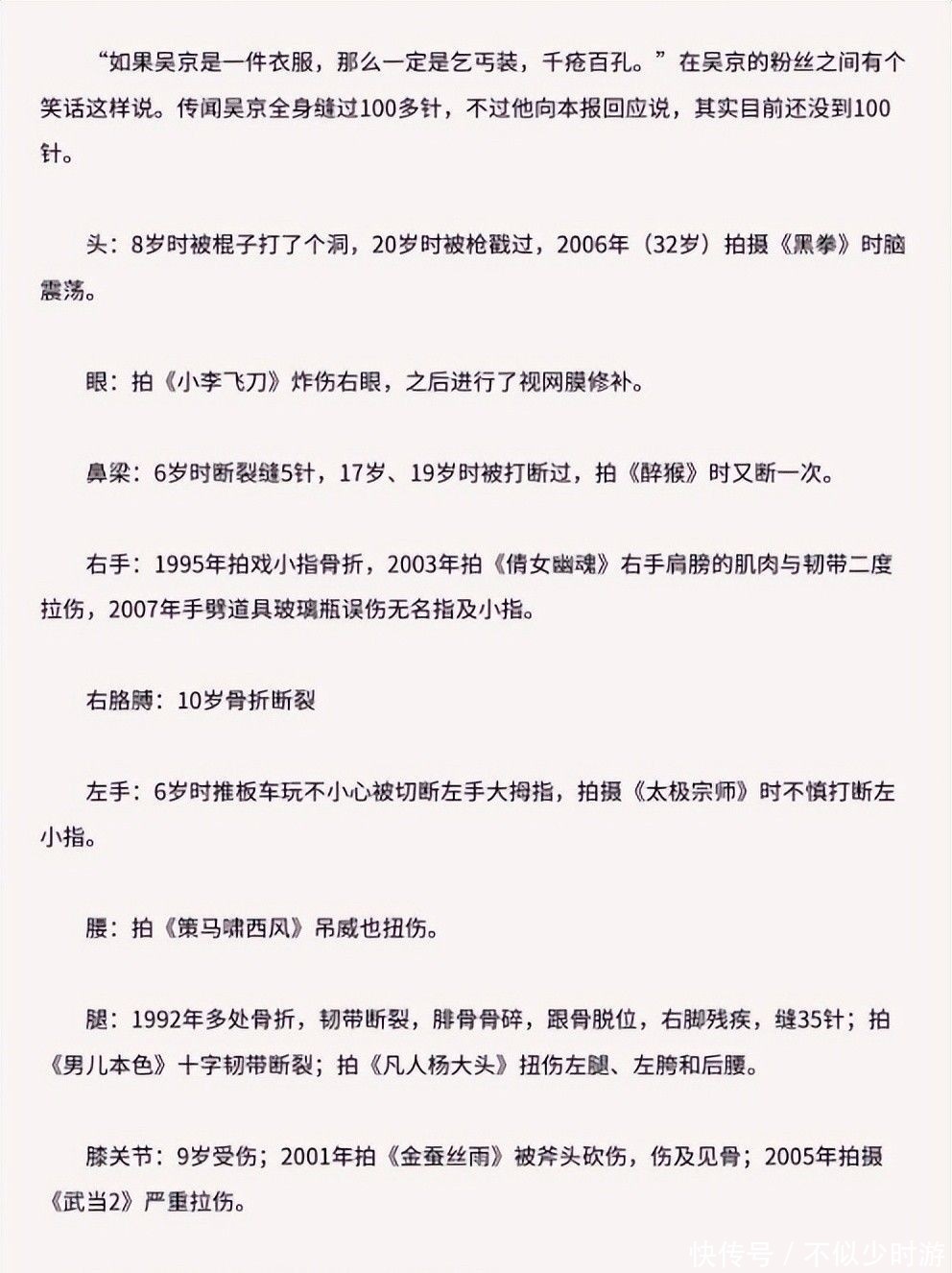 他生于传统武术世家,6岁便入体校接受系统化训练,压腿撕韧带、马步扎到双腿颤抖是童年日常,鼻骨断裂三次、右臂骨折两次、膝盖旧伤常年隐隐作痛——那些纵横交错的疤痕,不是勋章,而是他用身体写就的成长自传。